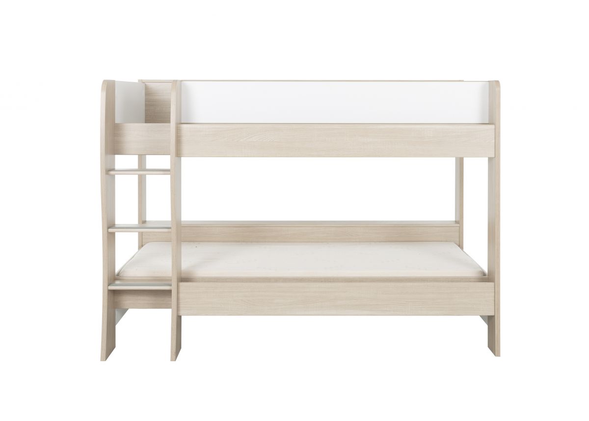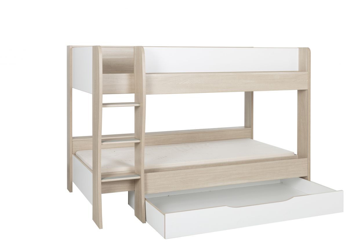 Ces lits superposés ROOMY ont un décor en chêne clair avec des accents blanc neutre et s'intègrent avec aisance dans une chambre d'enfant colorée. Chaque lit est pourvu d'une tablette de dépose (épaisseur 15,5 cm) et d'un bac de rangement (largeur 13 cm et profondeur 14 cm) pour les affaires de vos 2 trésors. Dans notre boutique en ligne, vous trouvez également un tiroir correspondant. Ce tiroir spacieux est parfait pour ranger des objets plus encombrants comme, par exemple, des jouets.